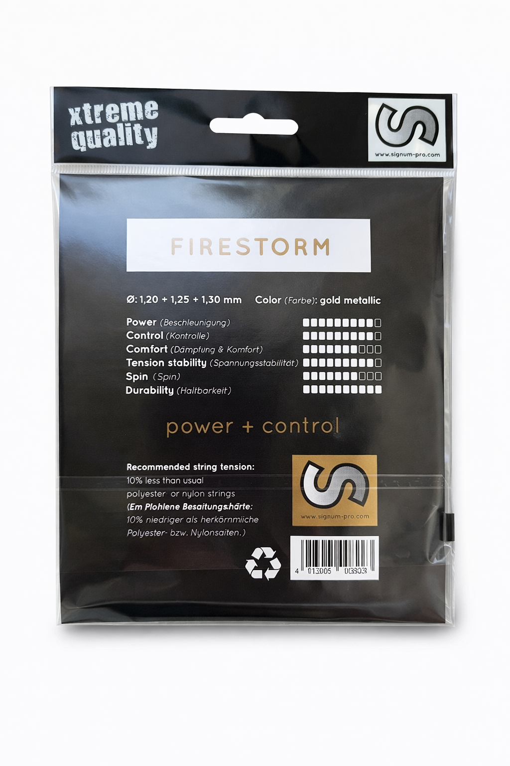 Die Signum Pro Firestorm ist eine der beliebtesten Polyester-Saiten für Spieler, die Druck, Kontrolle und ein sauberes Spielgefühl kombinieren möchten. Gerade in der Stärke 1,25 mm bietet sie den idealen Sweetspot zwischen Haltbarkeit und Spielbarkeit.